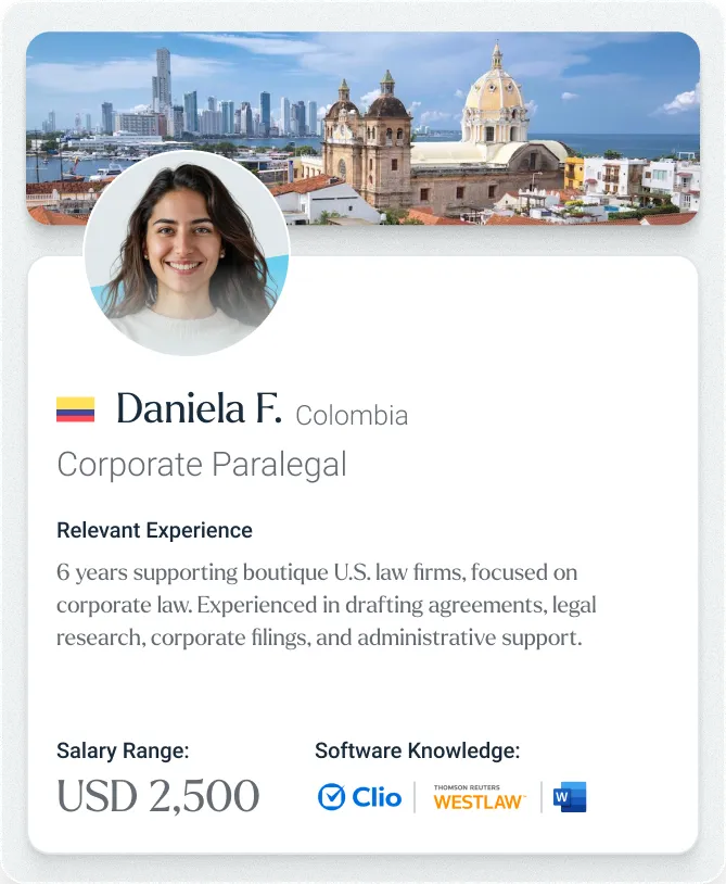 We connect you with Paralegals, Legal Assistants, and Docketing Coordinators experienced in cross-border documentation and case management. Each candidate is selected for high-end professionalism, ensuring a seamless extension of your firm.