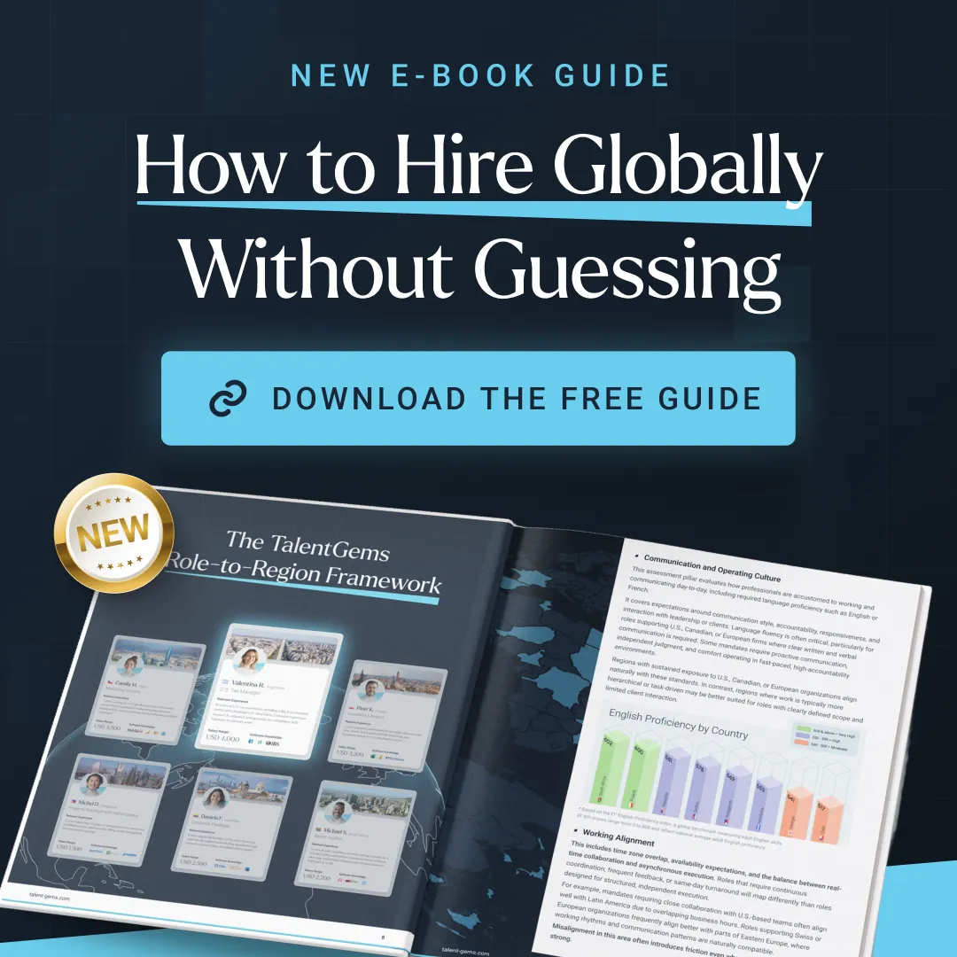 Eastern and Southeastern Europe offers a growing talent pool with strong English skills and expertise in technical, creative, and operational roles. Professionals from this region are adaptable and thrive in seamless collaboration across time zones.