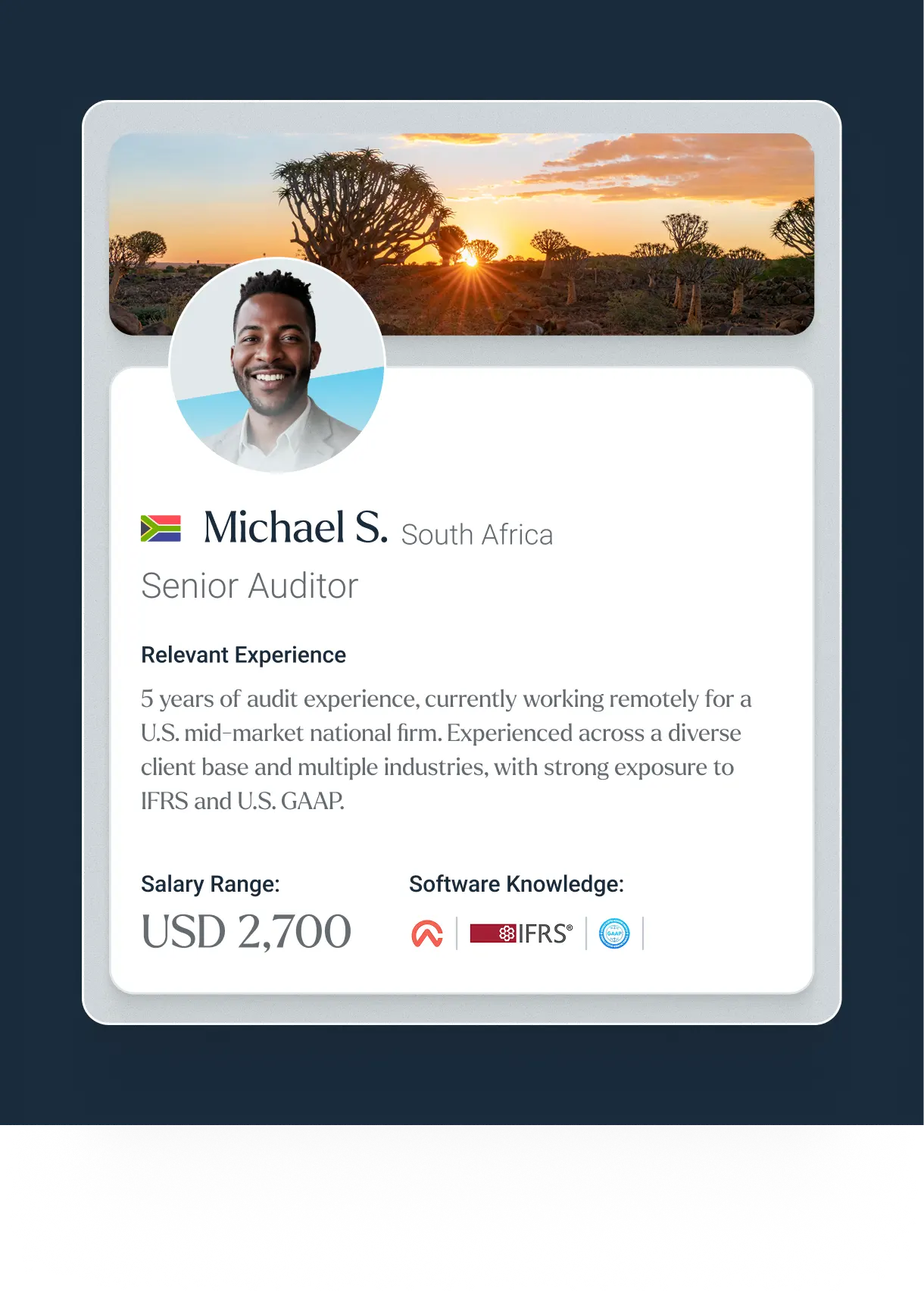 Our team looks across 48 countries to find experts who already know your industry. They understand your software and your rules. We find A-players who can start helping your business on day one.